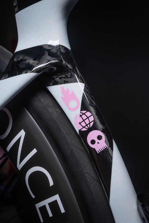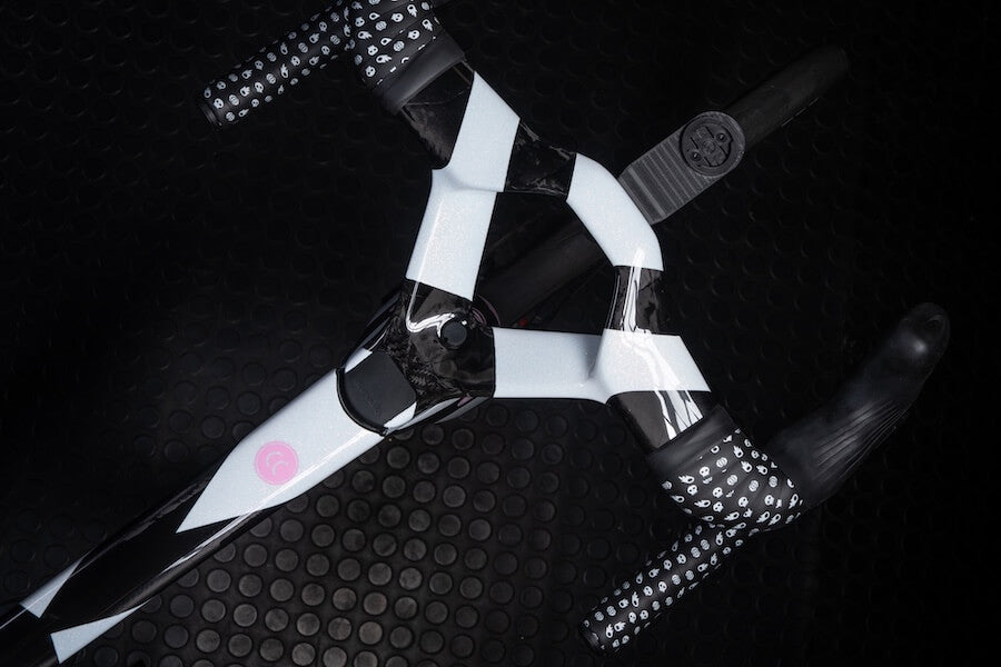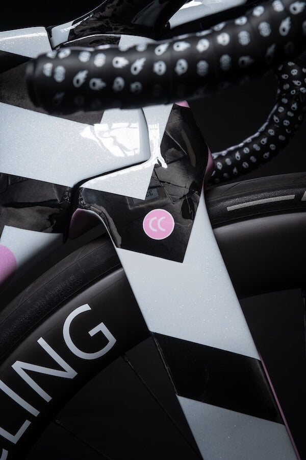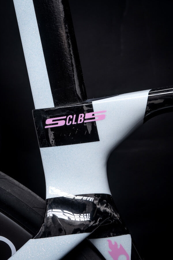 Featuring raw carbon and sparkle white chevrons, with an extra layer of glitter for good measure. ✨ We love our new Cervélo S5! And best of all, not a rubber band in sight :)