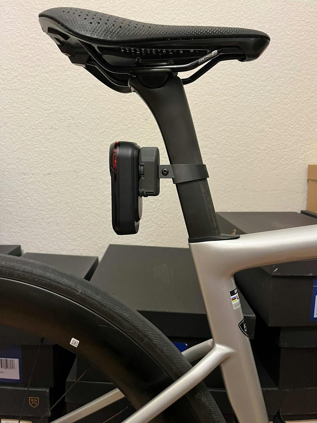 3D printed seat post mount perfectly dimensioned for the Specialized Tarmac SL8.